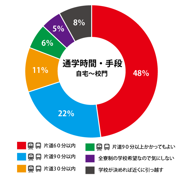 一般的に最も重視するされるのが家から学校までの移動距離(通学手段と通学経路、通学時間)です。 お子様の体力的な成長や公共機関への耐性などにより子供ごとに変わってくると思います。